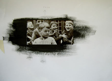 Erst die geweißten Stifte auftragen, dann das Schwarz drüberziehen, aber zum Kratzen eine Nadel in den Korken stecken!